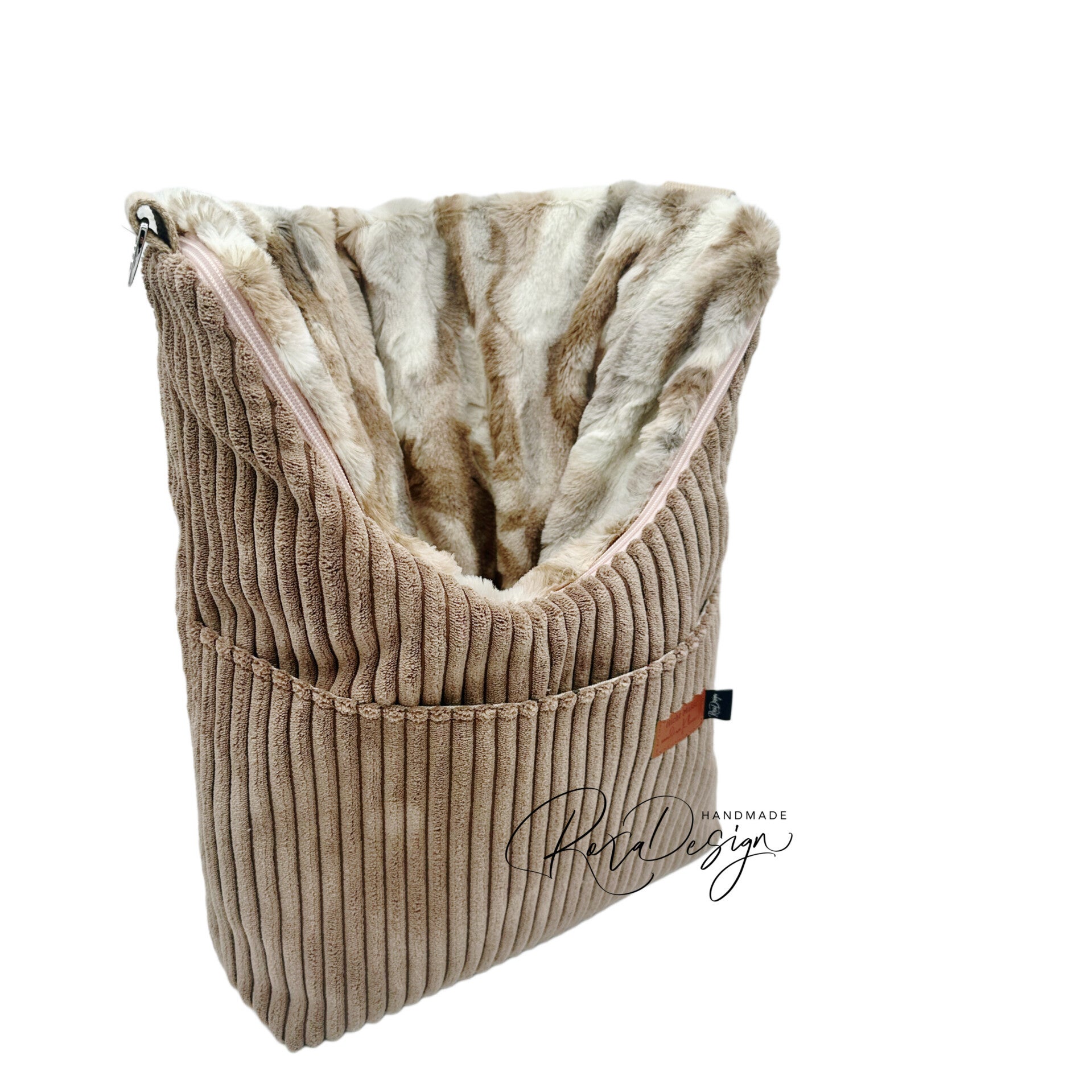 Geben Sie Ihrem kleinen Hund das Gefühl von Geborgenheit und Komfort mit dieser handgefertigten Tragetasche. Perfekt für unterwegs, zum Tierarzt oder einfach nur zum Kuscheln zu Hause. Die Tasche ist aus weichem, strapazierfähigem Cord gefertigt und verfügt über einen abnehmbaren Kuschelstoff für extra Wärme und Komfort.